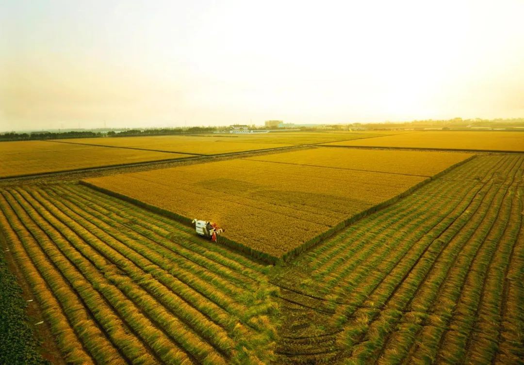 航民村农业机械化收割。陈国龙摄
